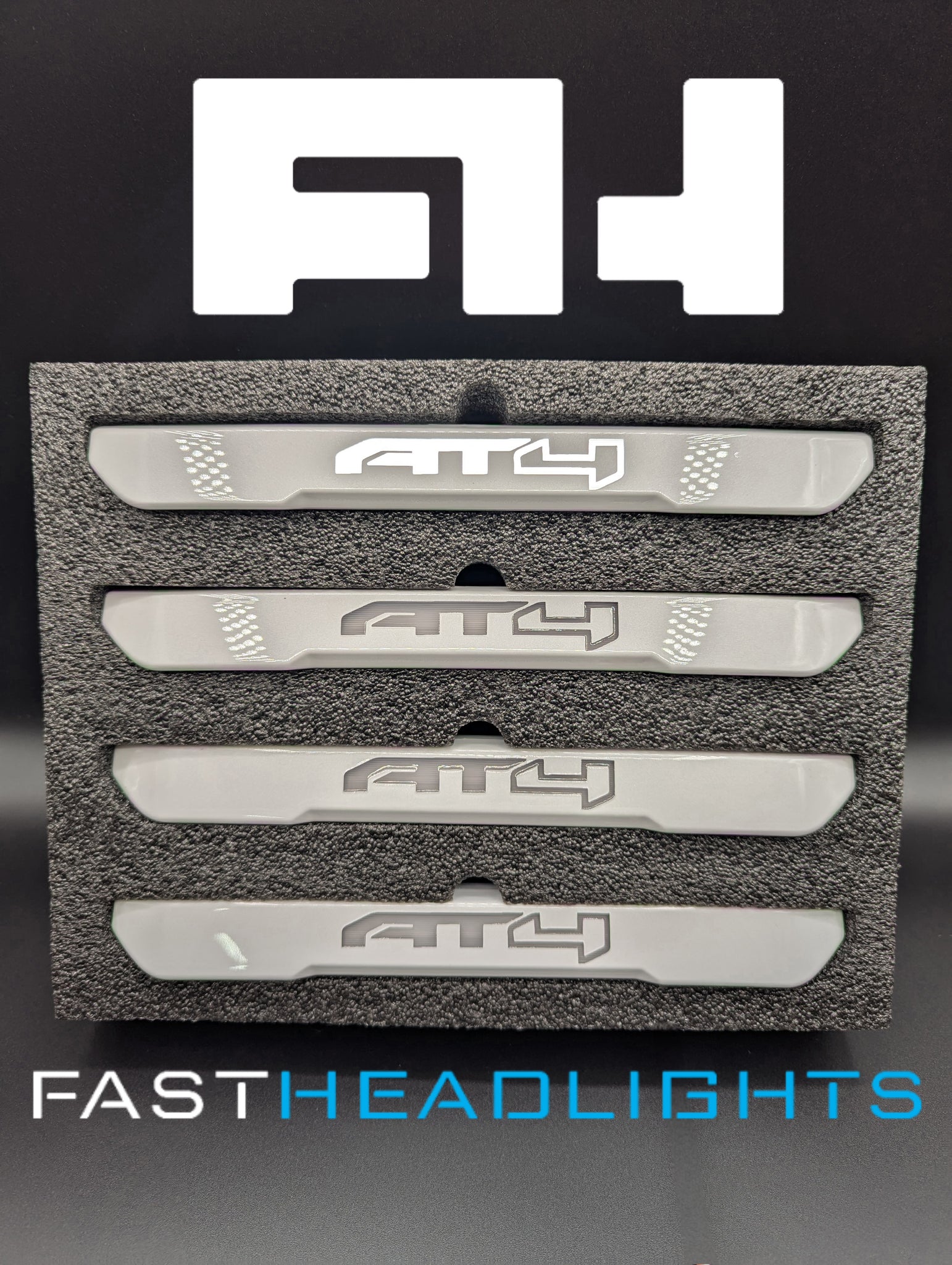 Looking for a color matched look on those fender lights you have on your GMC Canyon? Here is your solution. These are brand new fender lights that we configure with the specific LED color that you are looking for. As well, we paint to match whatever color you would like with the AT4 logo lit up with the LED color you select .